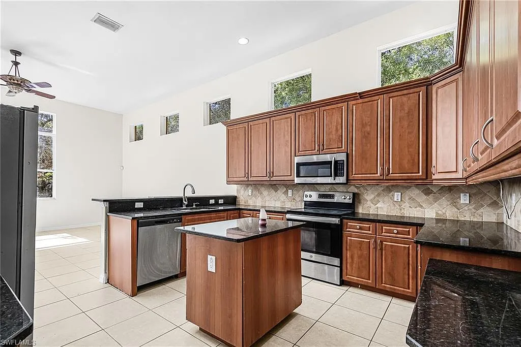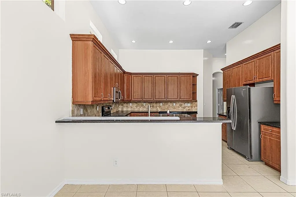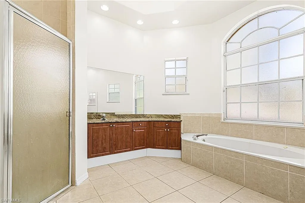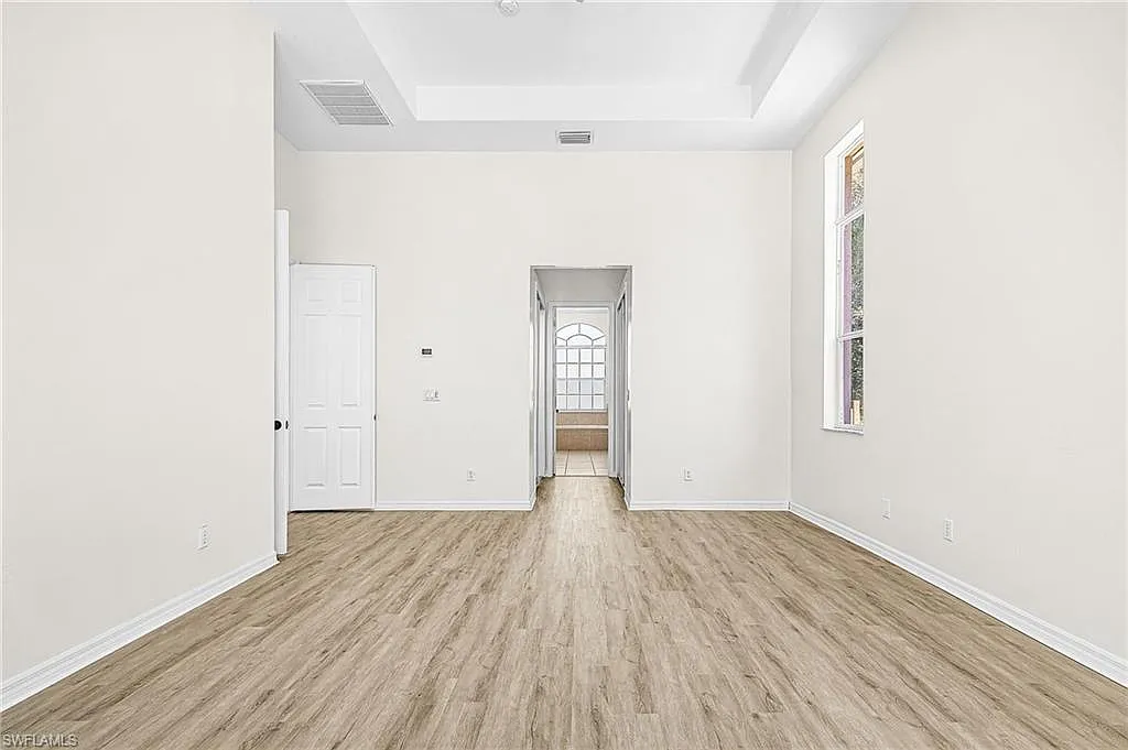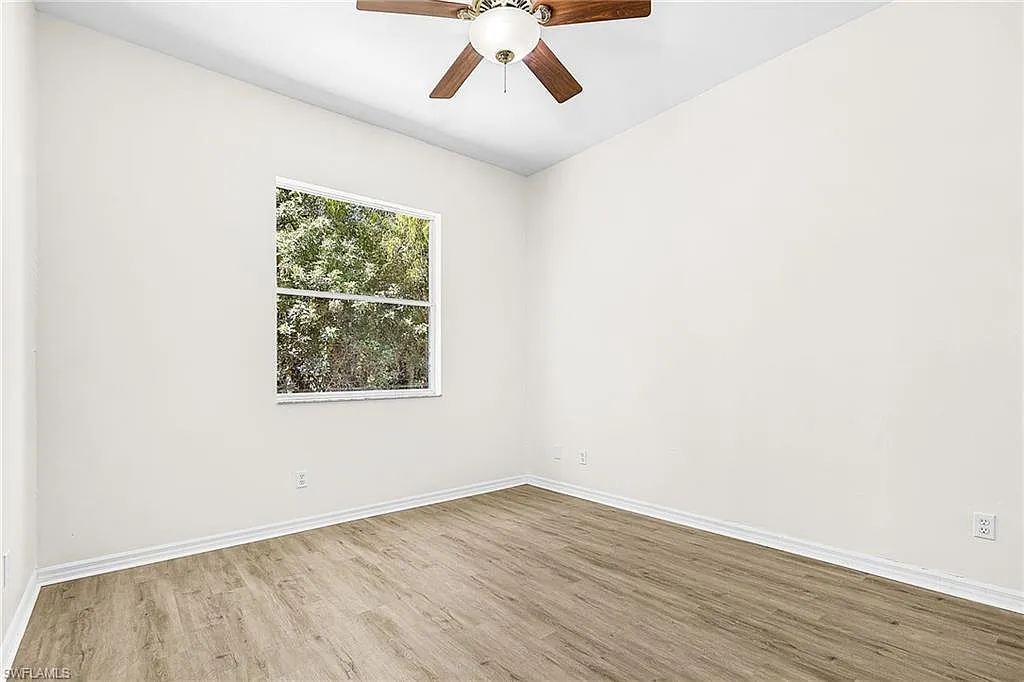 Golden Gate Estates home with pool! This spacious 4-bedroom, 3-bath residence features laminate and tile flooring throughout. The oversized primary suite offers a luxurious bath with Roman tub, separate shower, and his-and-hers sinks. Enjoy an open-concept kitchen with stainless steel appliances, high ceilings, and a large center island perfect for entertaining. Seller has recently replaced the roof with permits. Additional highlights include walk-in closets, a 3-car garage, extended driveway, and a cabana bath ideal for pool access. Situated on a large, wooded lot with a screened-in pool, this home offers privacy, space, and comfort in a beautiful setting.